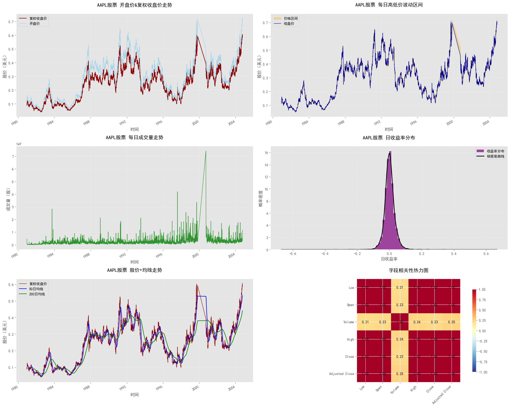 - 数据质量:AAPL股票数据集完整性高、噪声少,经过标准化清洗后,可满足各类量化分析需求