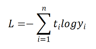 其中,log表示自然对数,yi表示神经网络的输出,ti表示正确解标签;而且,ti中只有正确解标签对应的值为1,其它均为0(one-hot表示)。