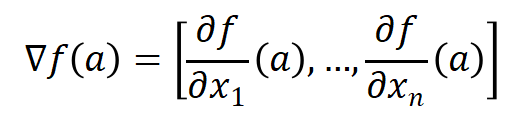 这个向量称为f在点a的梯度。
