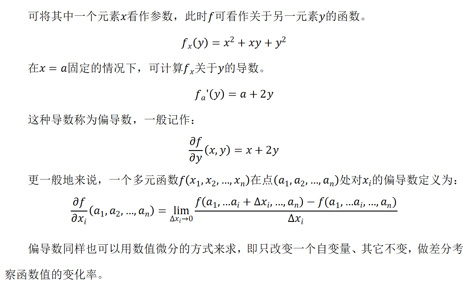 多元函数关于每个变量