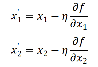 具体来说,我们初始找到函数f (x 1**,x** 2)的一个点(x 1**,x**2),按下式进行更新: