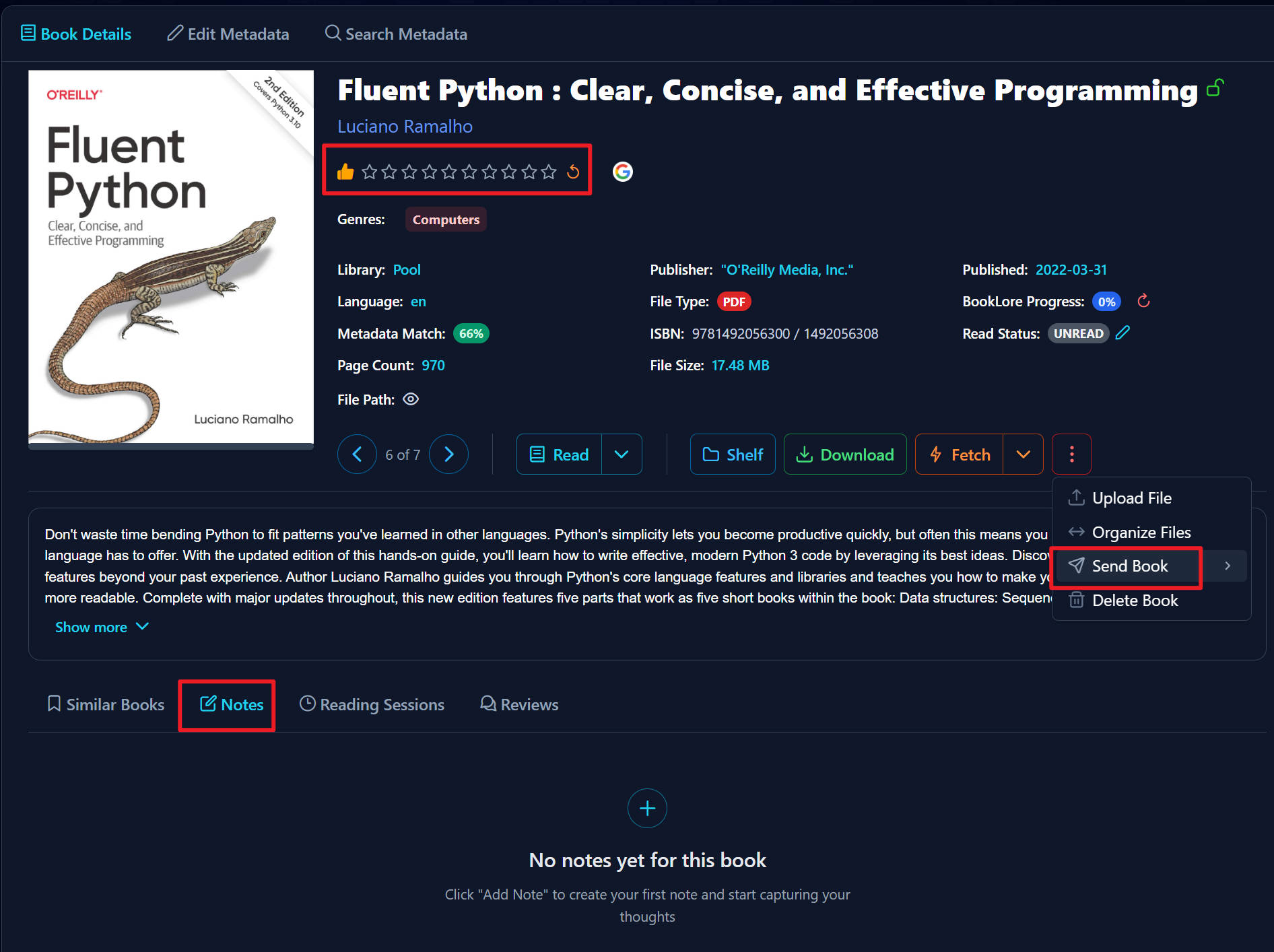 可以给书籍打分,写笔记,还可以将书籍发送到邮箱。