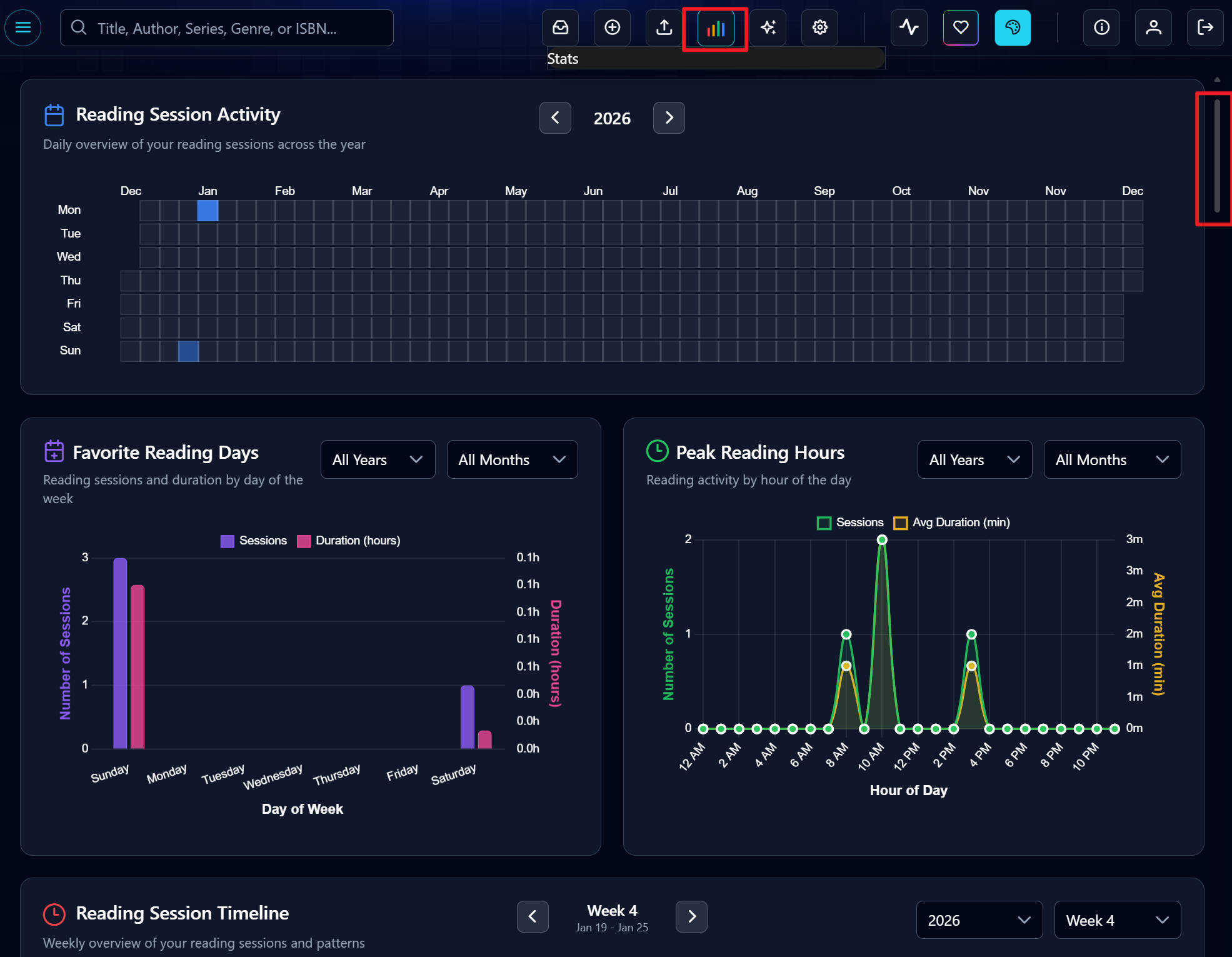 它的统计功能实在是强大了,有Library和阅读信息的统计。对于喜欢数据的朋友来说是福音了。