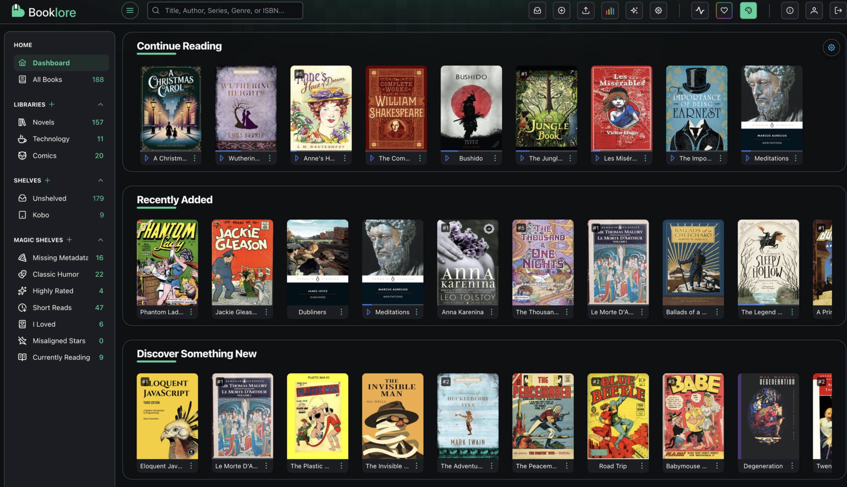 BookLore 是一款 自托管(Self‑Hosted)数字图书管理系统,旨在帮助用户优雅地管理、组织并阅读个人电子书收藏。它提供现代化、响应式的网页界面,支持多用户访问、多格式阅读、自动元数据抓取、智能书架等功能,让你可以在完全掌控数据的前提下,搭建属于自己的私有数字图书馆。