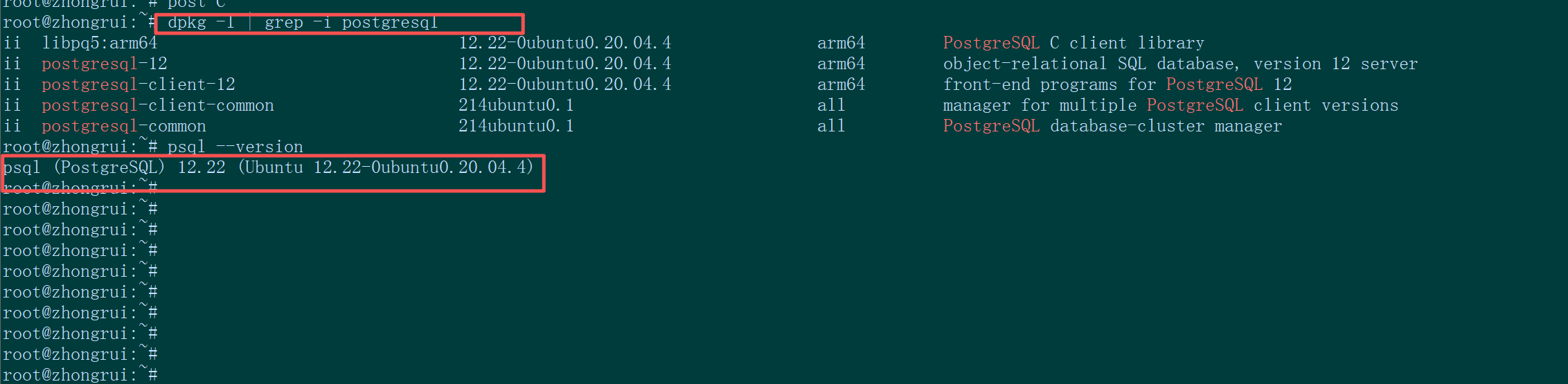 root@zhongrui:~# dpkg -l | grep -i postgresql