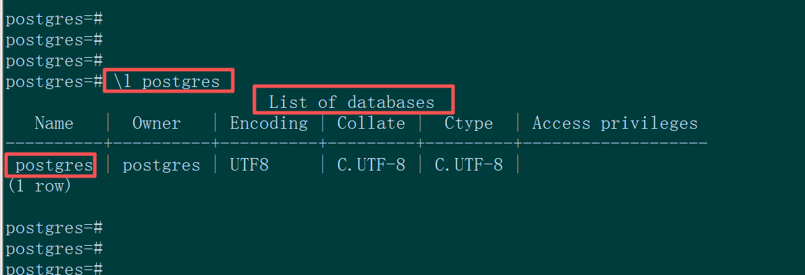 template1 | postgres | UTF8 | C.UTF-8 | C.UTF-8 | =c/postgres +