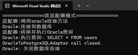 std::cout << "适配器:转换并执行Oracle查询\n";
