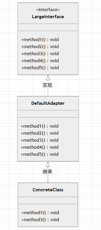 - 当一个接口定义了过多的方法,而某些类只需要实现接口的部分方法,而不需要实现接口的所有方法时,可以定义一个抽象类实现接口,并实现部分方法,其他类继承抽象类,实现需要的方法即可。