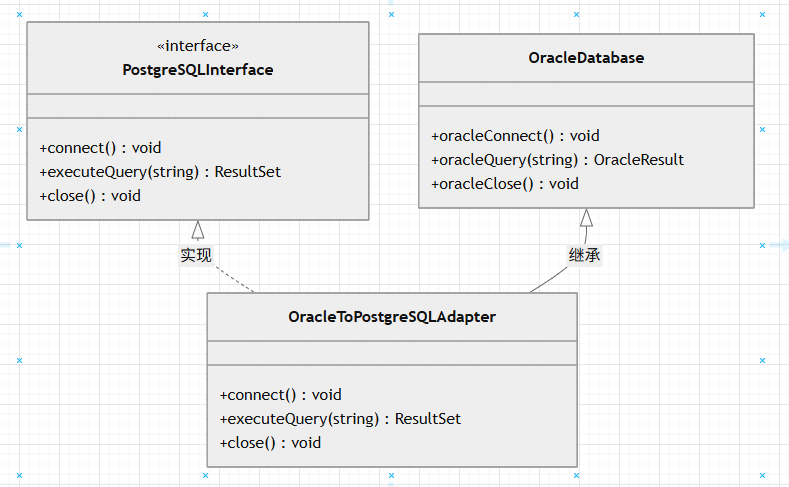 以PostgreSQL数据库 为例,PostgreSQL数据库在适配国产化过程中,需要兼容Oracle数据库 ,而Oracle数据库的接口与PostgreSQL数据库的接口不一致,所以,需要使用适配器模式,将Oracle数据库的接口转换为PostgreSQL数据库的接口。