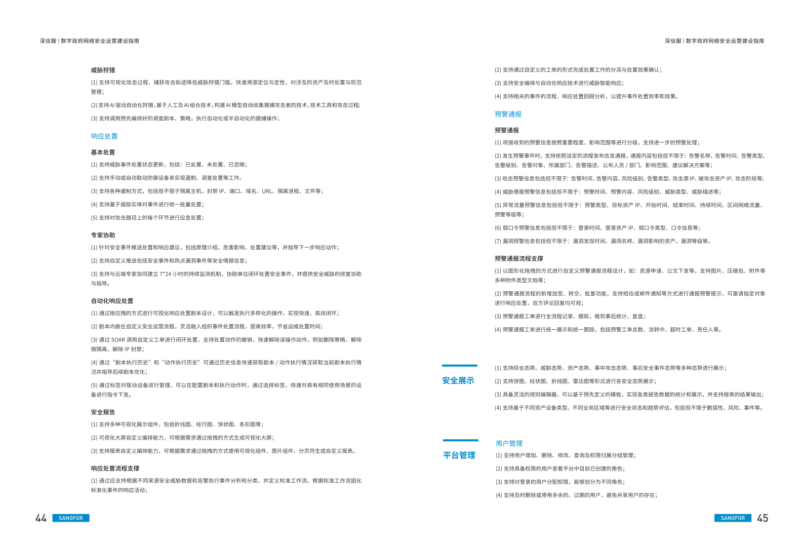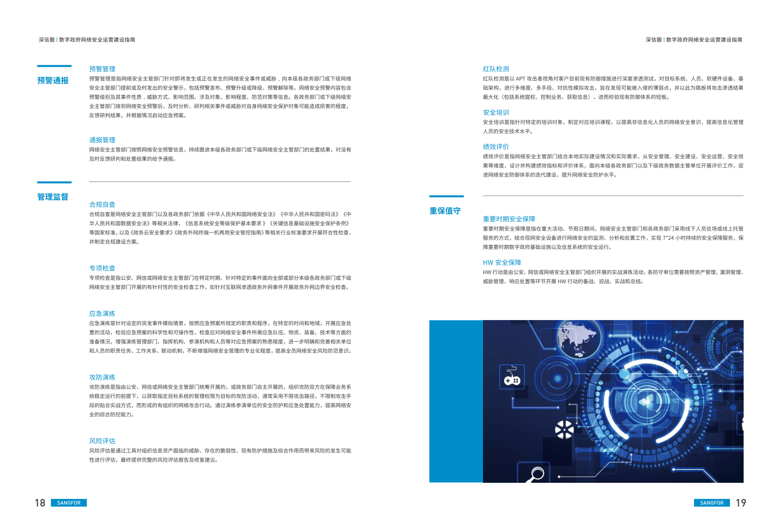 技术工具 部署风险发现、协同处置、指挥决策、态势呈现等技术措施,覆盖漏洞管理、威胁检测、事件响应、APT防御等场景2312。
