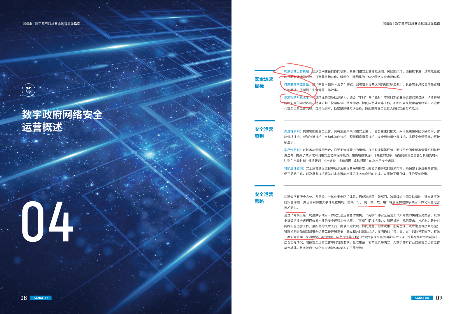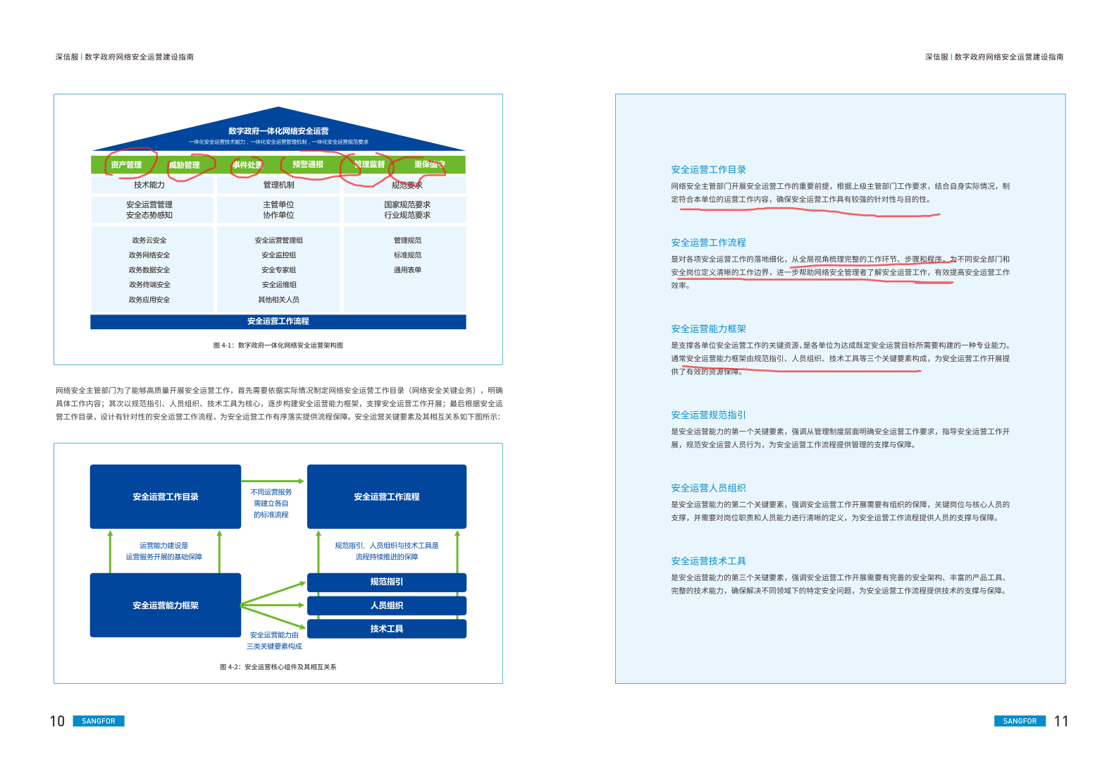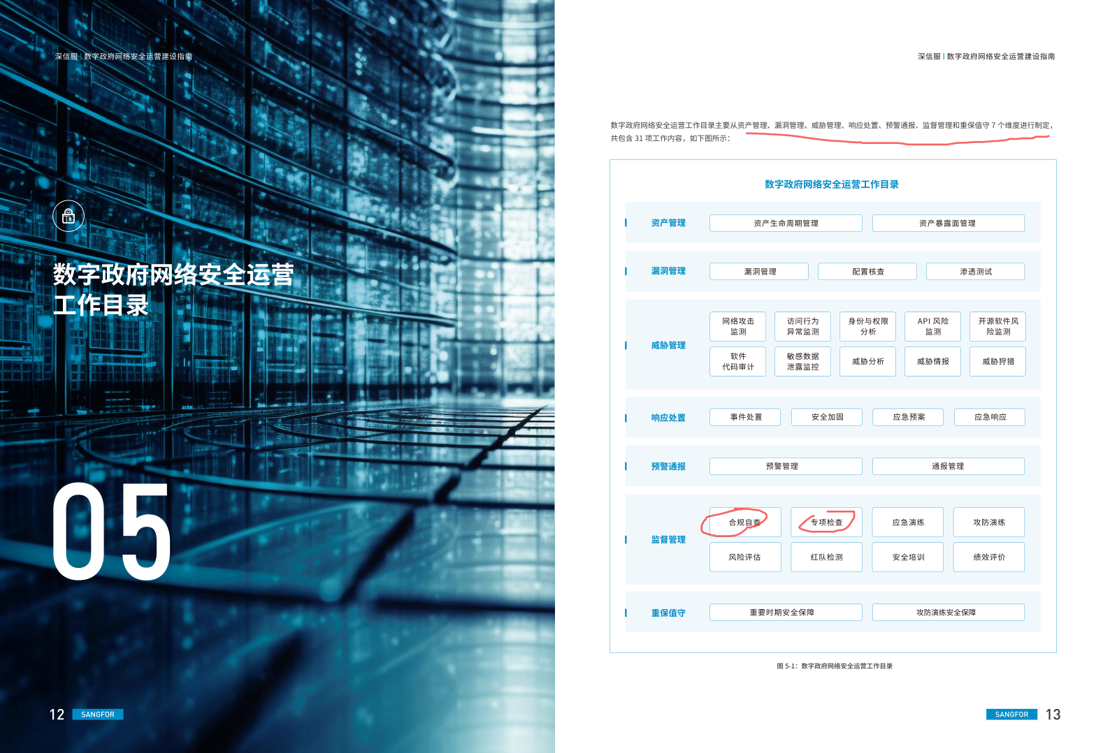 数字政府网络安全运营建设应以构建实战化、体系化、常态化安全保障能力为目标,聚焦"人机共智"模式,涵盖安全运营目标、原则、思路,明确资产管理、漏洞管理等7大工作目录,构建"规范指引、人员组织、技术工具"能力框架[3]。