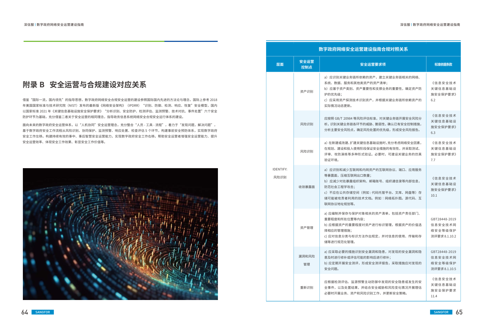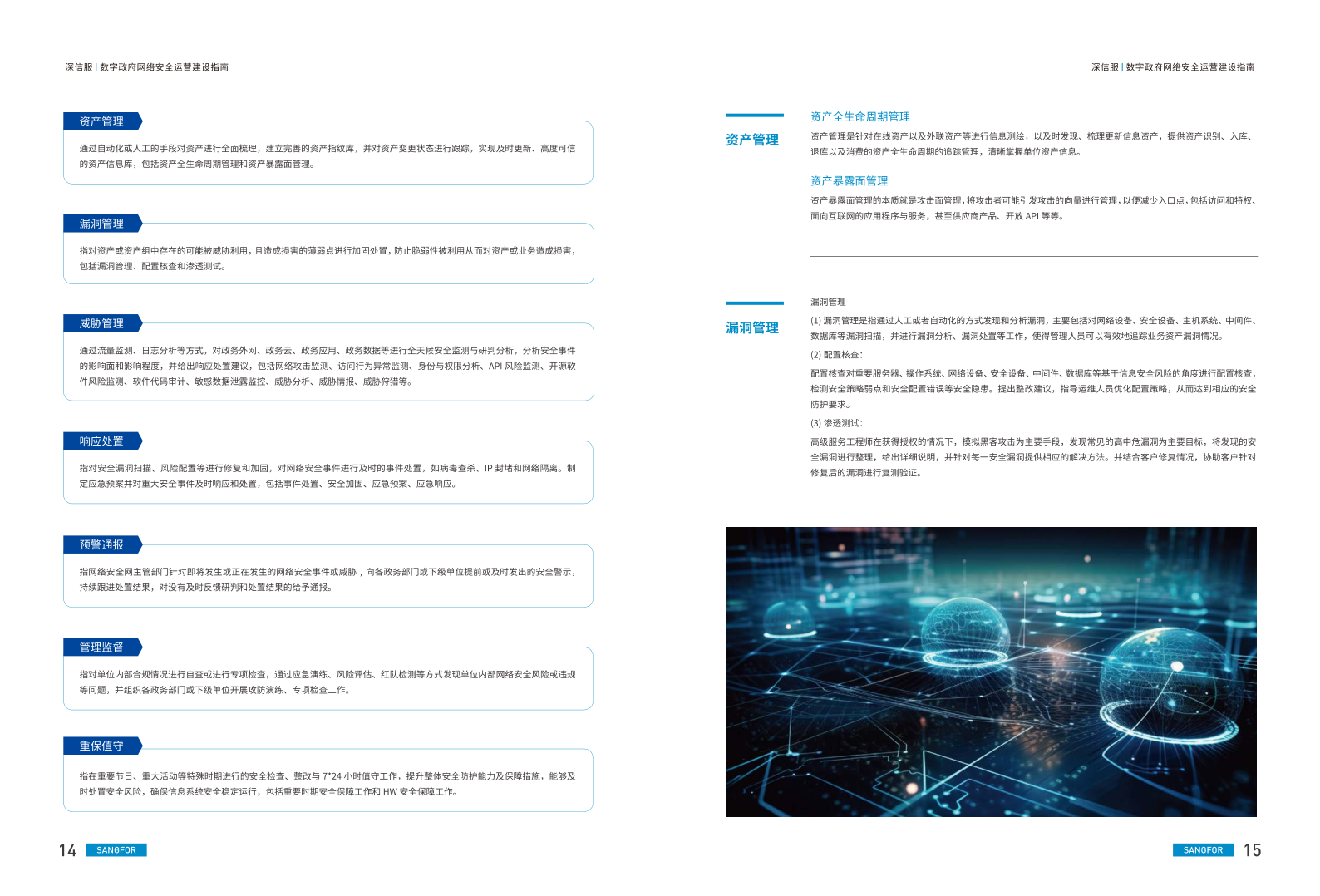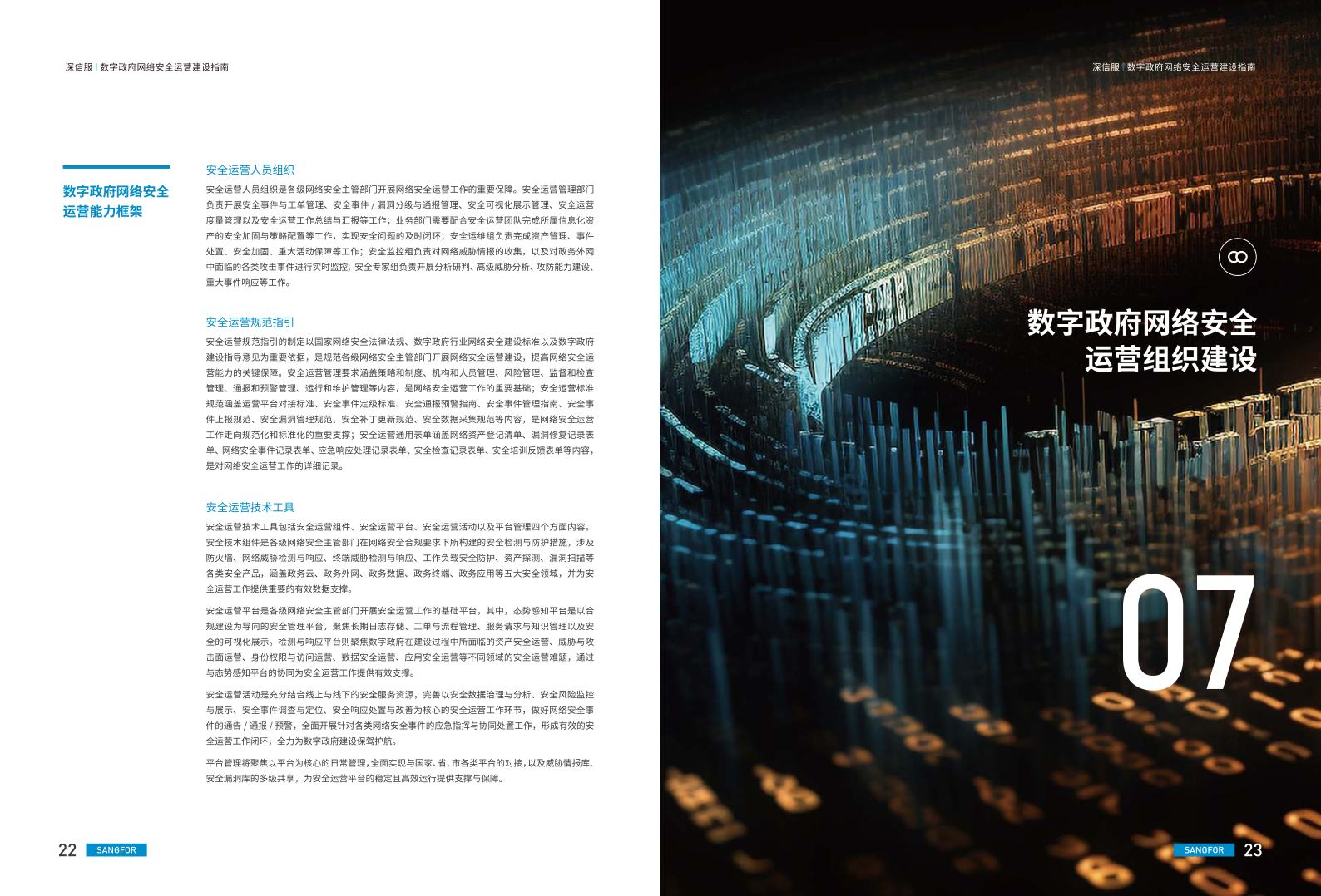 数字政府网络安全运营建设应以构建实战化、体系化、常态化安全保障能力为目标,聚焦"人机共智"模式,涵盖安全运营目标、原则、思路,明确资产管理、漏洞管理等7大工作目录,构建"规范指引、人员组织、技术工具"能力框架[3]。