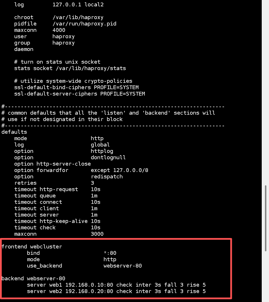 vim /etc/haproxy/haproxy.cfg