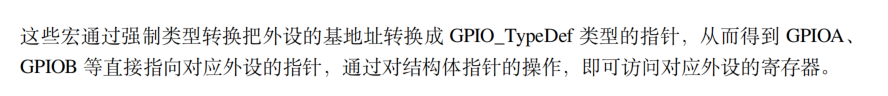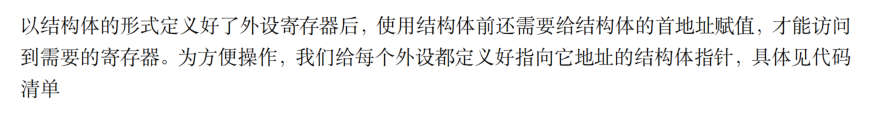 知道了这个结构体的首地址(也就是这个外设的基地址/此外设的第一个寄存器的地址),就可以访问这个结构体的所有成员,注意地址要为结构体指针类型的