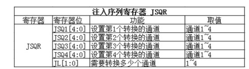 • 注入序列的转换顺序是从JSQx[ 4 : 0 ](x=4-JL[1:0])开始。只有当JL=4的时候,注入通道的转换顺序才会按照JSQ1、JSQ2、JSQ3、JSQ4的顺序执行。
