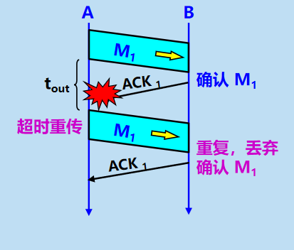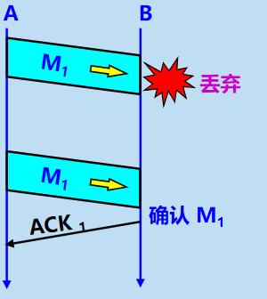 如果主机A在⼀个特定时间间隔内没有收到B发来的确认应答, 就会进⾏重发;