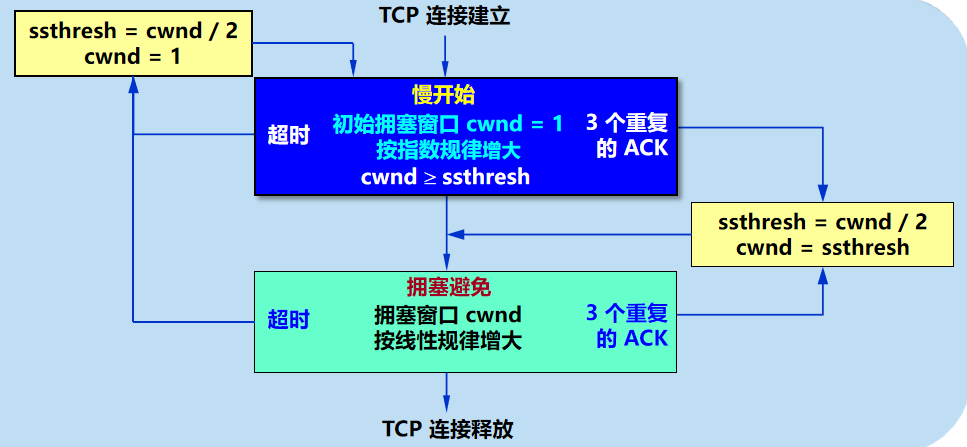 当 cwnd > ssthresh 时,停止使用慢开始算法,改用拥塞避免算法。