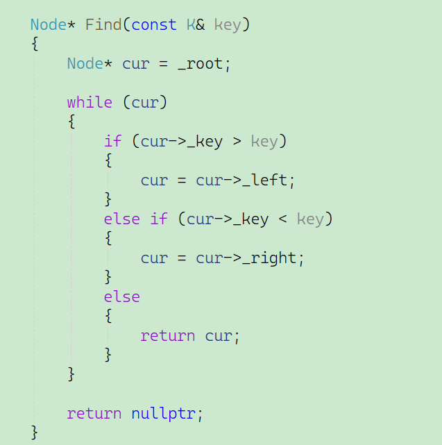 但是对于查找函数来说,我们不仅要查看我们需要的key值是否在二叉搜索树当中,还需要找到key所对应的value值,所以返回类型需要进行改变: