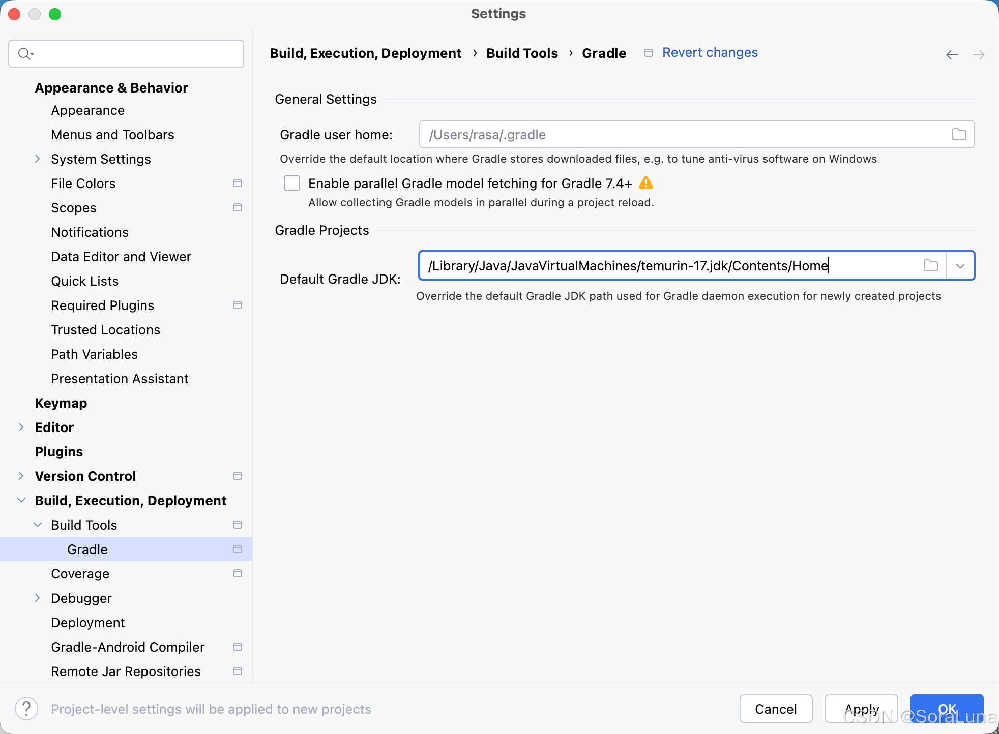 Android Studio → Settings → Build, Execution, Deployment → Build Tools → Gradle