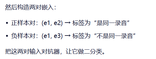 使其预测同一说话人的嵌入对是否来自同一录音的解释