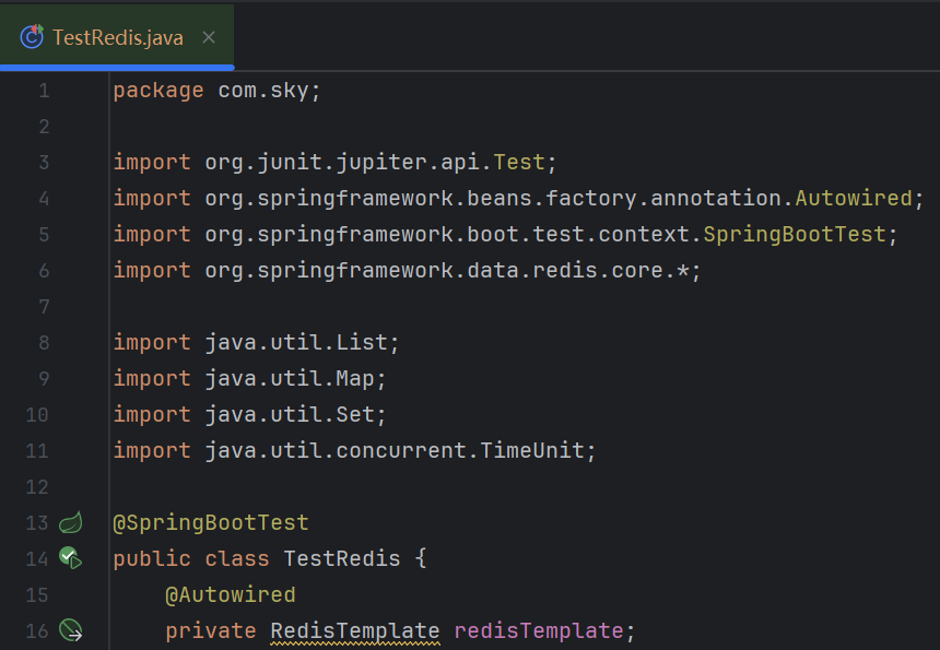 由于已经导入了Spring Data Redis,所以redisTemplate对象已经在IOC容器里面了,即便我们没有做第三步编写配置类,他也有默认的配置类,所有直接自动注入即可。