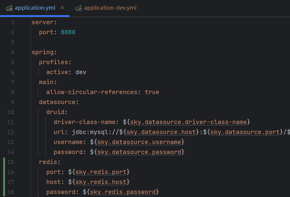 XMLsky: redis: port: 6379 host: localhost password: 123456在application.yml文件中配置Redis的端口号、地址、密码的引用