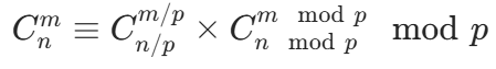 通俗理解:将 n 和 m 分别表示为 p 进制数,然后对每一位分别计算组合数,最后将结果相乘取模。