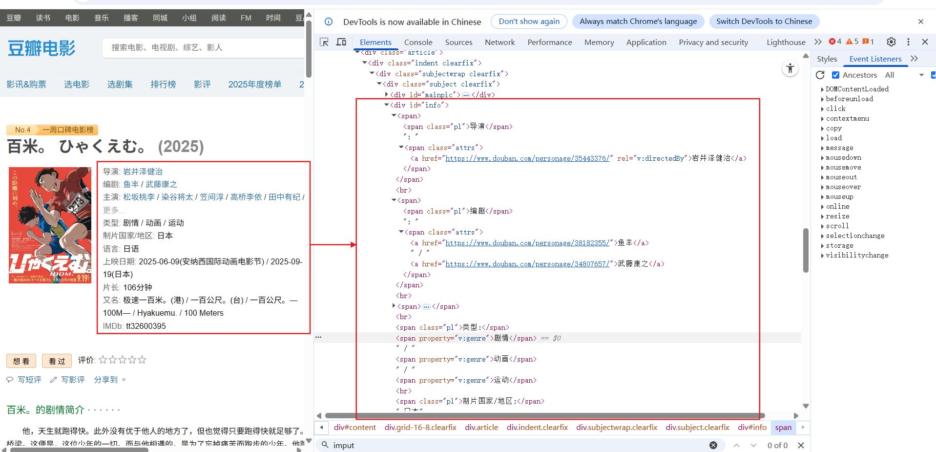 示例网页链接:https://movie.douban.com/subject/36907263/