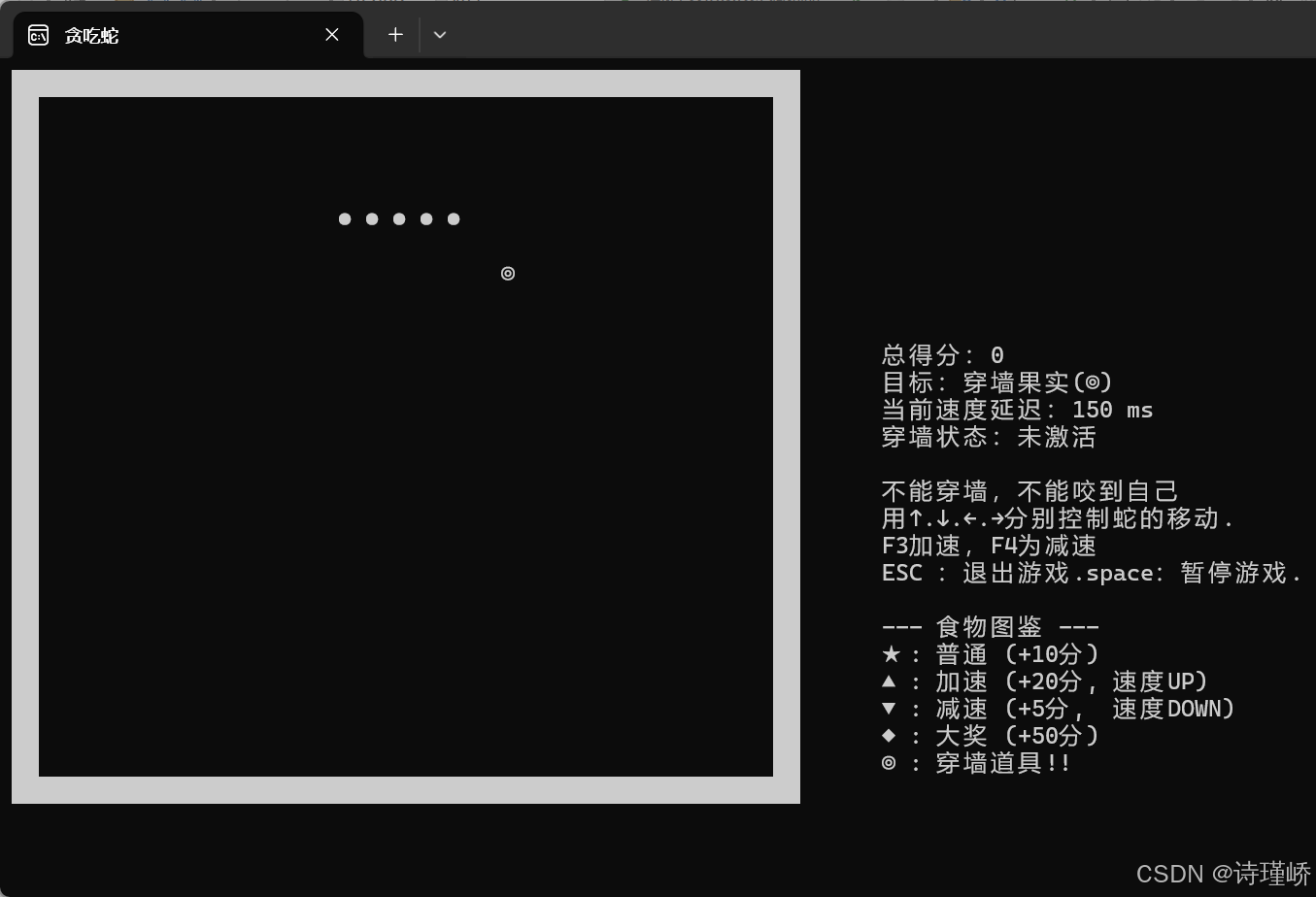 使用C语言在Windows环境的控制台中模拟实现贪吃蛇游戏,并增加多种食物和个性化穿墙模式。
