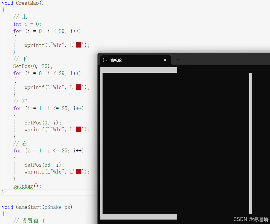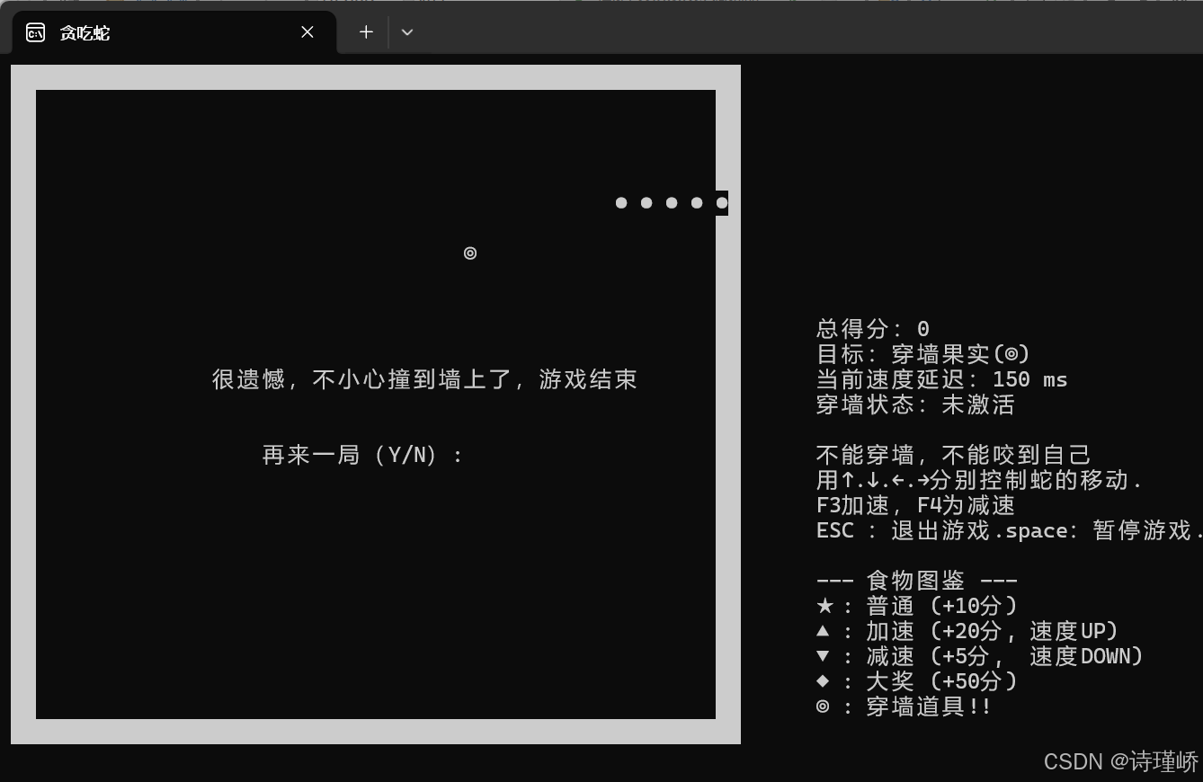 printf("很遗憾,不小心撞到墙上了,游戏结束\n");