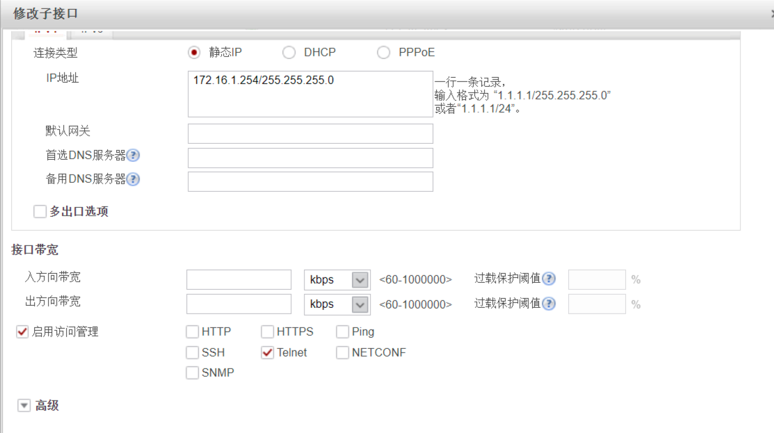 - 仅允许 172.16.1.0/24 网段主机通过 Telnet 登录,采用本地认证方式。