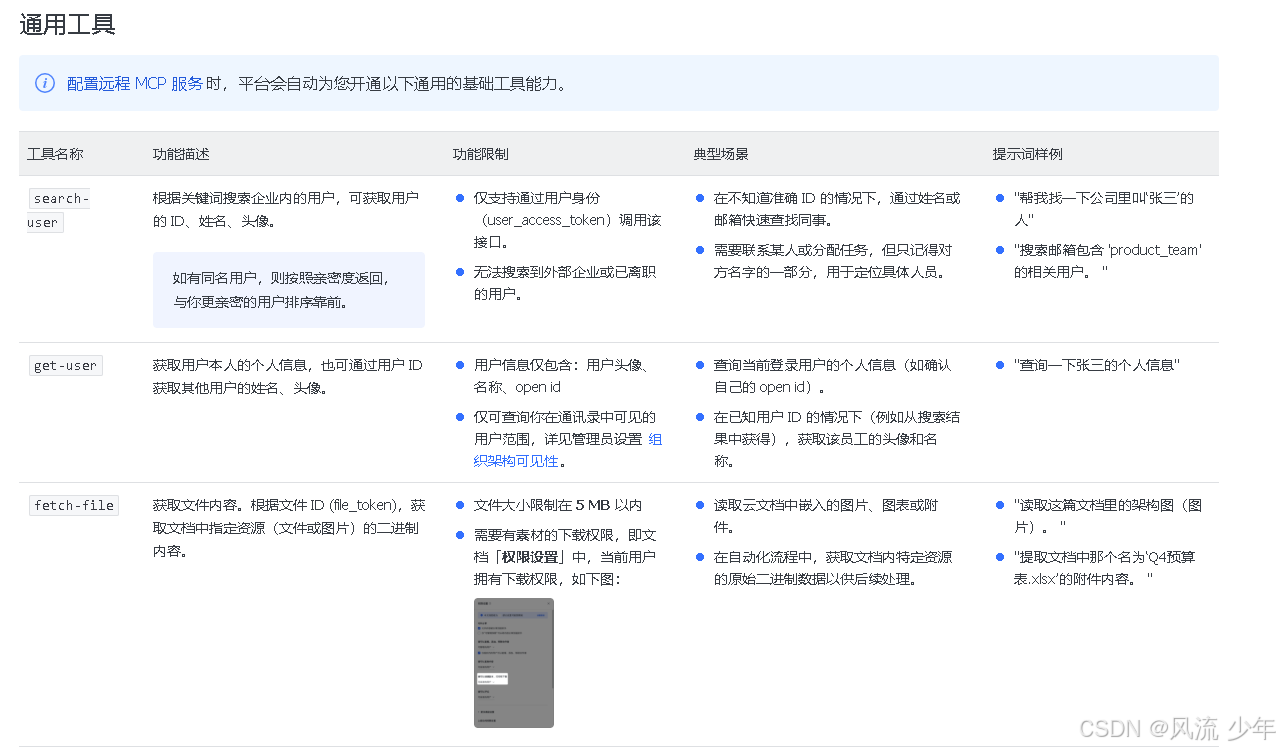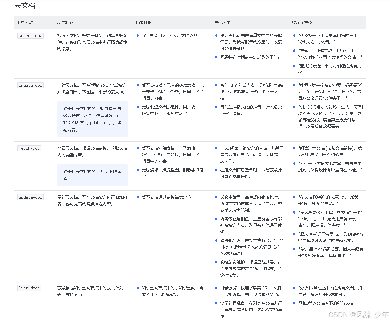 - MCP支持的工具:https://open.larkoffice.com/document/mcp_open_tools/supported-tools