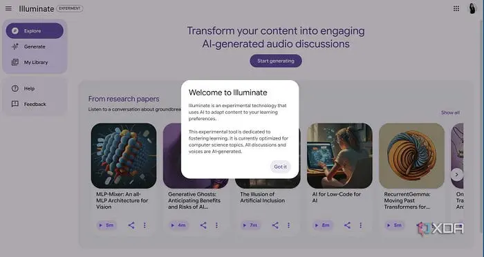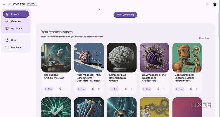 与接受 PDF、Google 文档、YouTube 转录和网页的 NotebookLM 不同,Illuminate 专注于 arXiv.org 的科学存储库。这大约是 240 万篇学术文章,这确实很可观,但与 NotebookLM 的灵活性相比仍然有限。
