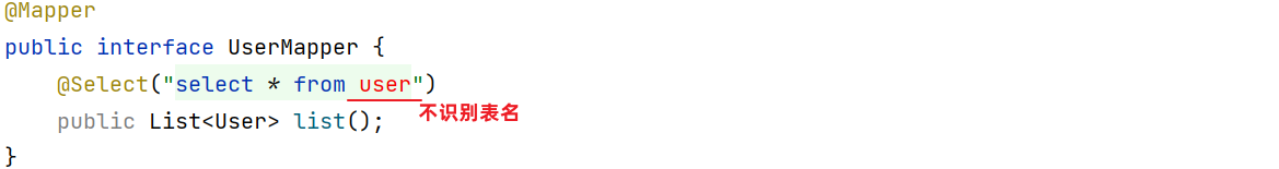 默认我们在UserMapper接口上的@Select注解中编写SQL语句是没有提示的。如果想让idea给出提示,可以做如下配置: