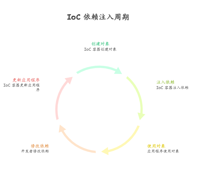 IoC 实现了资源的集中化管理,减少重复开发与配置成本。IoC 容器作为第三方管理者,统一负责对象(Bean)的创建、初始化、生命周期管控与配置,开发者无需在代码中重复编写 new 对象的逻辑,也无需关注对象创建的细节。