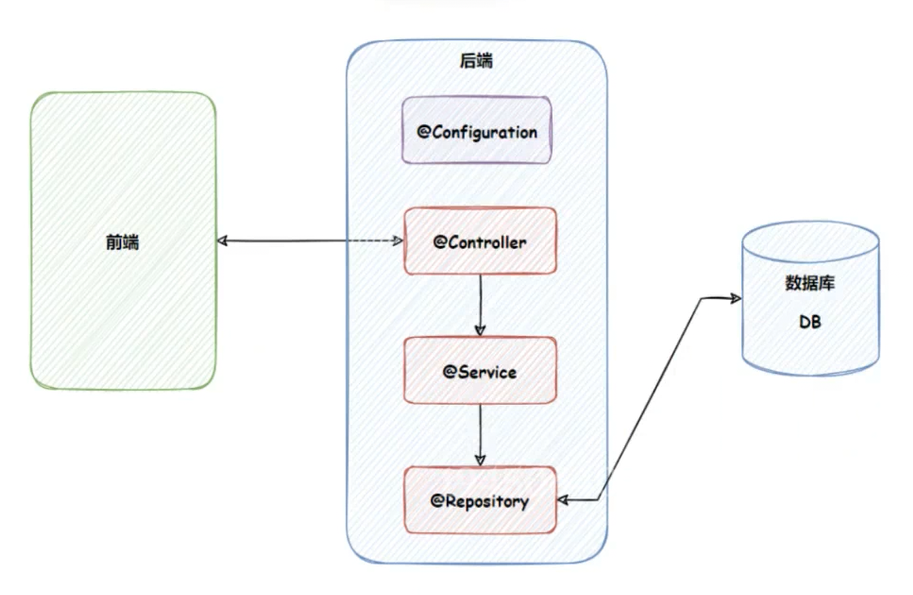 - @Configuration:配置层,处理项目中的一些配置信息;
