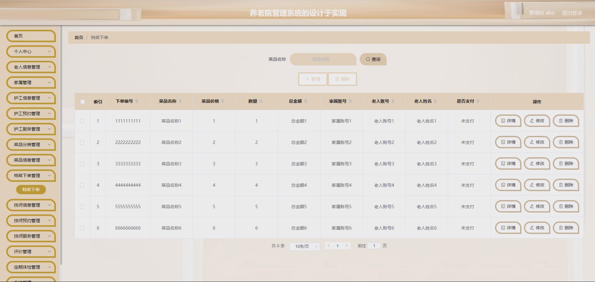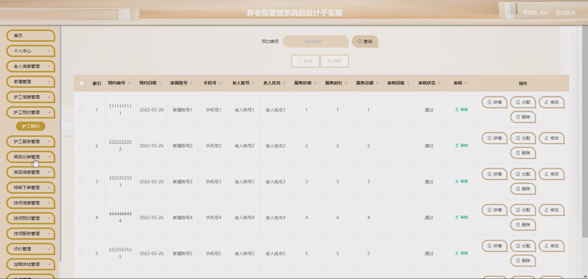 随着我国人口老龄化进程不断加快,养老院作为养老服务的核心载体,其管理的规范化、信息化水平直接影响养老服务质量与老人居住体验。当前多数中小型养老院仍采用人工登记、纸质台账的传统管理模式,涵盖菜品管理、人员管理、服务预约、体检管理等多方面的管理工作繁琐且效率低下,易出现信息遗漏、预约混乱、服务追溯困难等问题。