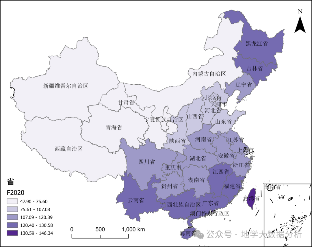 我们根据中国省市县行政区划将其统计为各省市县植被生物量的平均值数据,概览如下: