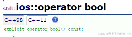可以看到,string是有重载>>的,返回的是cin的引用,那么怎么让cin的引用转换成bool呢,就如我《类型转换》的文章中,c++是有自定义类型转内置类型的方法,而库里也是有实现的。
