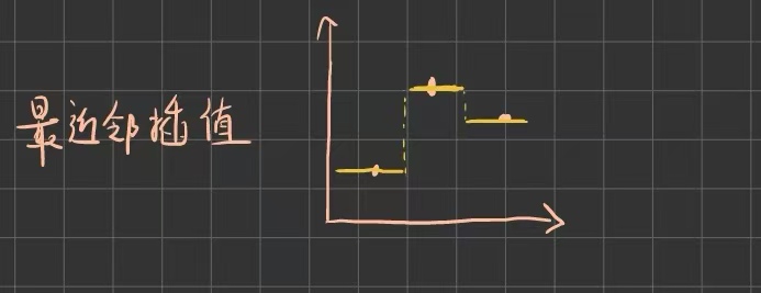 最近邻插值的思想是,对于待求的未知点,其值与离它最近的已知点的值相等。这种方法能够保持原始值,实现简单,计算速度也很快,因为它只需要进行四舍五入和内存拷贝操作,没有复杂的乘除运算,在所有插值方法中复杂度最低(O(1))。但它只依赖于最近的一个点,忽略其他邻近点的信息,会产生不连续的阶梯状结果,质量比较低下。也因此,最近邻插值比较适用于像素艺术和复古游戏图形的放大、实时性要求极高或者更复杂算法的初步处理,还有分类数据或标签数据的重采样等场景。