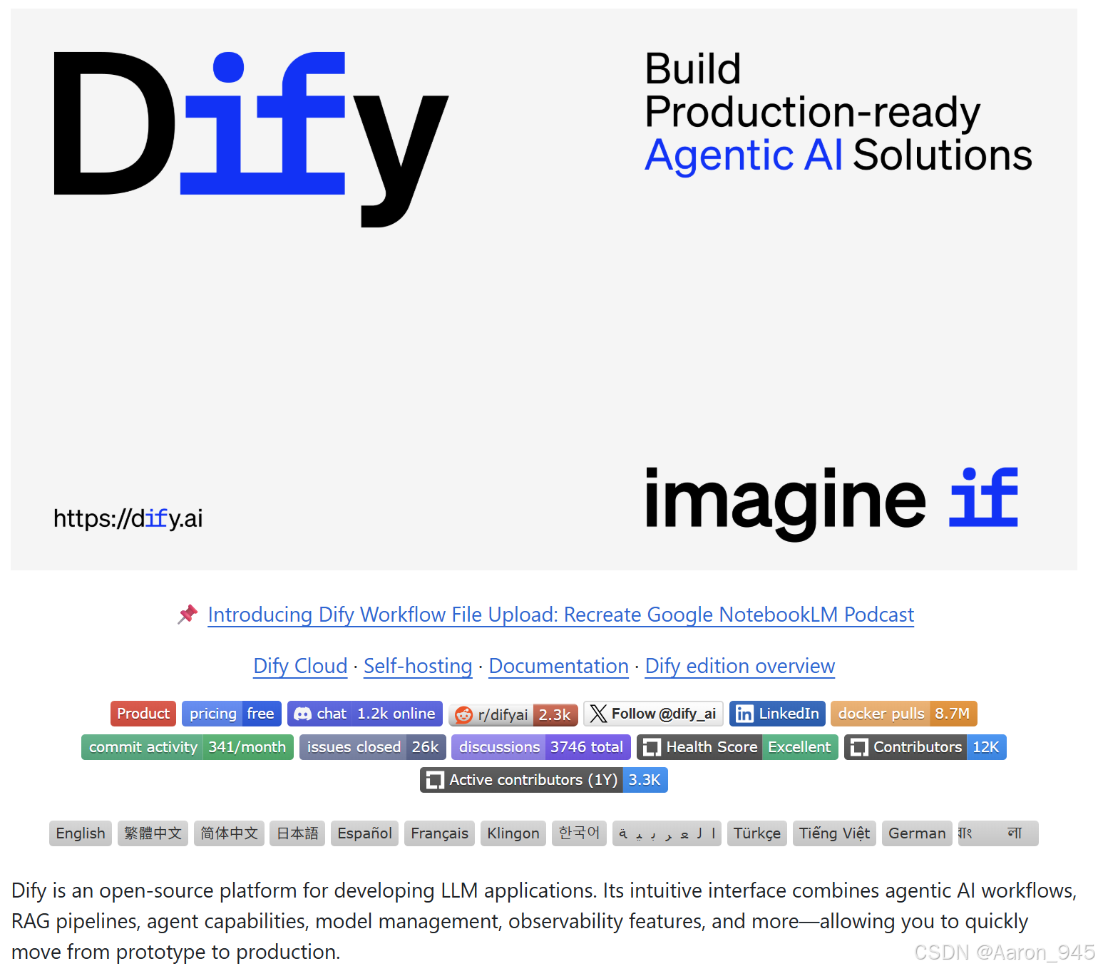 在人工智能迅猛发展的今天,大型语言模型(LLM)已经成为推动技术创新的核心驱动力。然而,如何高效地利用这些强大的模型,快速构建和部署实际可用的 AI 应用,仍然是开发者和企业面临的重要挑战。Dify 作为一个开源平台,正是为了解决这一痛点而诞生。它提供了一个直观的界面,将智能体 AI 工作流、RAG 管道、代理能力、模型管理、可观测性功能等集于一身,让用户能够快速从原型阶段过渡到生产环境。本文将从技术角度深入剖析 Dify 平台的整体架构、核心功能以及实际应用场景,为开发者提供一份全面的实战指南。