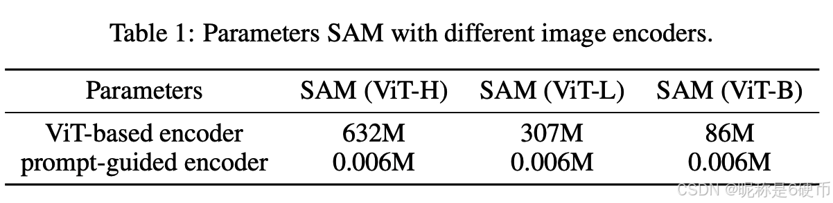 【翻译】表 1:使用不同图像编码器的 SAM 参数。