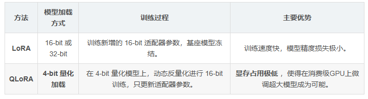 - QLoRA:当显存有限时,采用QLoRA将基础模型量化为4-bit精度,同时保持LoRA适配器为全精度,可在消费级显卡上高效微调大模型。