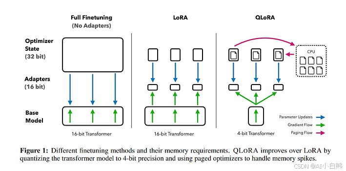 尽管它们都基于相同的核心思想,但在具体微调方法上存在一个关键区别:QLoRA 在 LoRA 的基础上引入了量化技术。