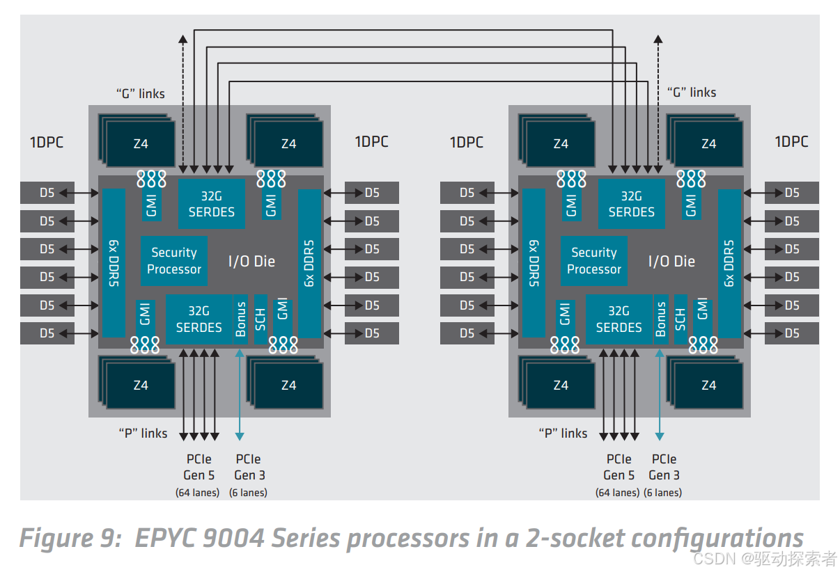 第四代 EPYC 9004 系列继承了前代产品的架构设计,并在内存带宽与 I/O 性能上持续提升: