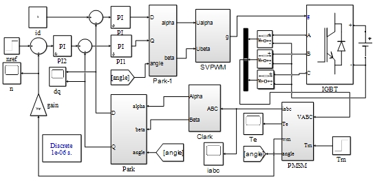 PMSM永磁同步电机矢量控制模型,MATLAB/SIMULINK仿真软件,PI参数已调好,可以进行变转速控制,可全程加负载