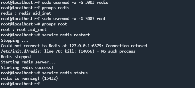 > sudo usermod -a -G 3003 redis