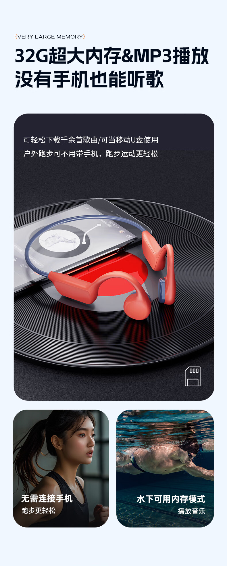 除了在价格、音质、降噪、通话和舒适度方面赶超其他耳机外,园世这两款耳机在硬件方面也相当强悍。同样拥有32G超大内存,可储存上千首音乐,完全是蓝牙耳机+mp3的结合体,试问市面上有哪款百元耳机能同时拥有mp3和IPX8级的防水等级?想来也是寥寥无几,更遑论还有超大的电池容量,可以待机一整天!所以,重度耳机使用者、对耳机性能要求高、手头不宽裕的用户一定不要错过园世这两款骨传导耳机!