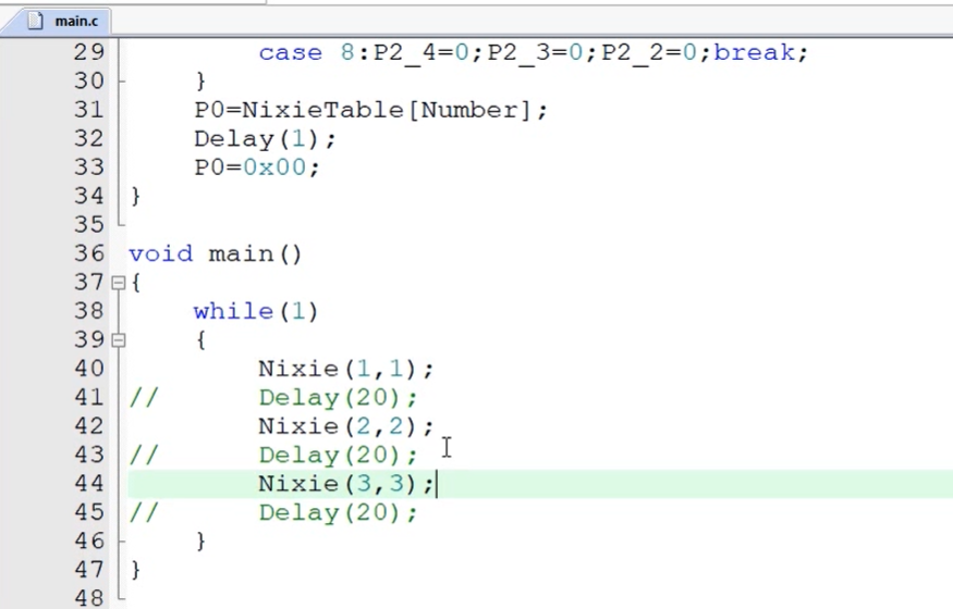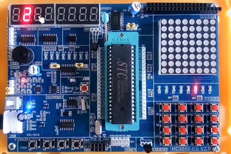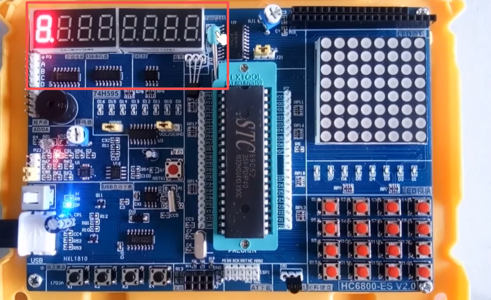 上面写的代码就是单片机直接扫描数码管,显示多为数据就涉及到数码管的动态扫描,不断地送数据不断的刷新,就属于单片机直接扫描,会消耗cpu时间,一旦程序受到阻塞,没来的级扫描,数码管显示就会有问题闪烁或熄灭