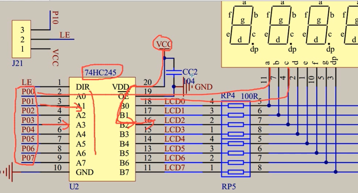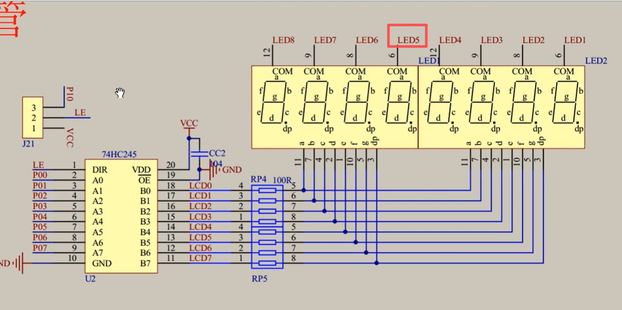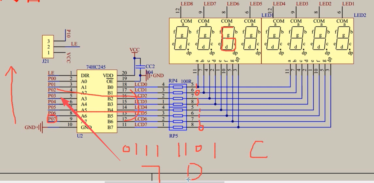 高电平点亮数码管电流小,会很暗,所以加了一个缓冲器,来提高他的驱动能力